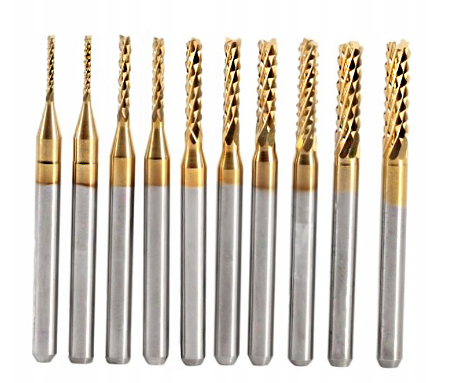 Sada fréz z veľmi jemne zrnitého materiálu spekaného karbidom s vysokou pevnosťou, tvrdosťou a odolnosťou proti opotrebeniu.