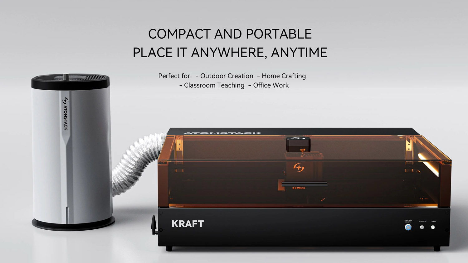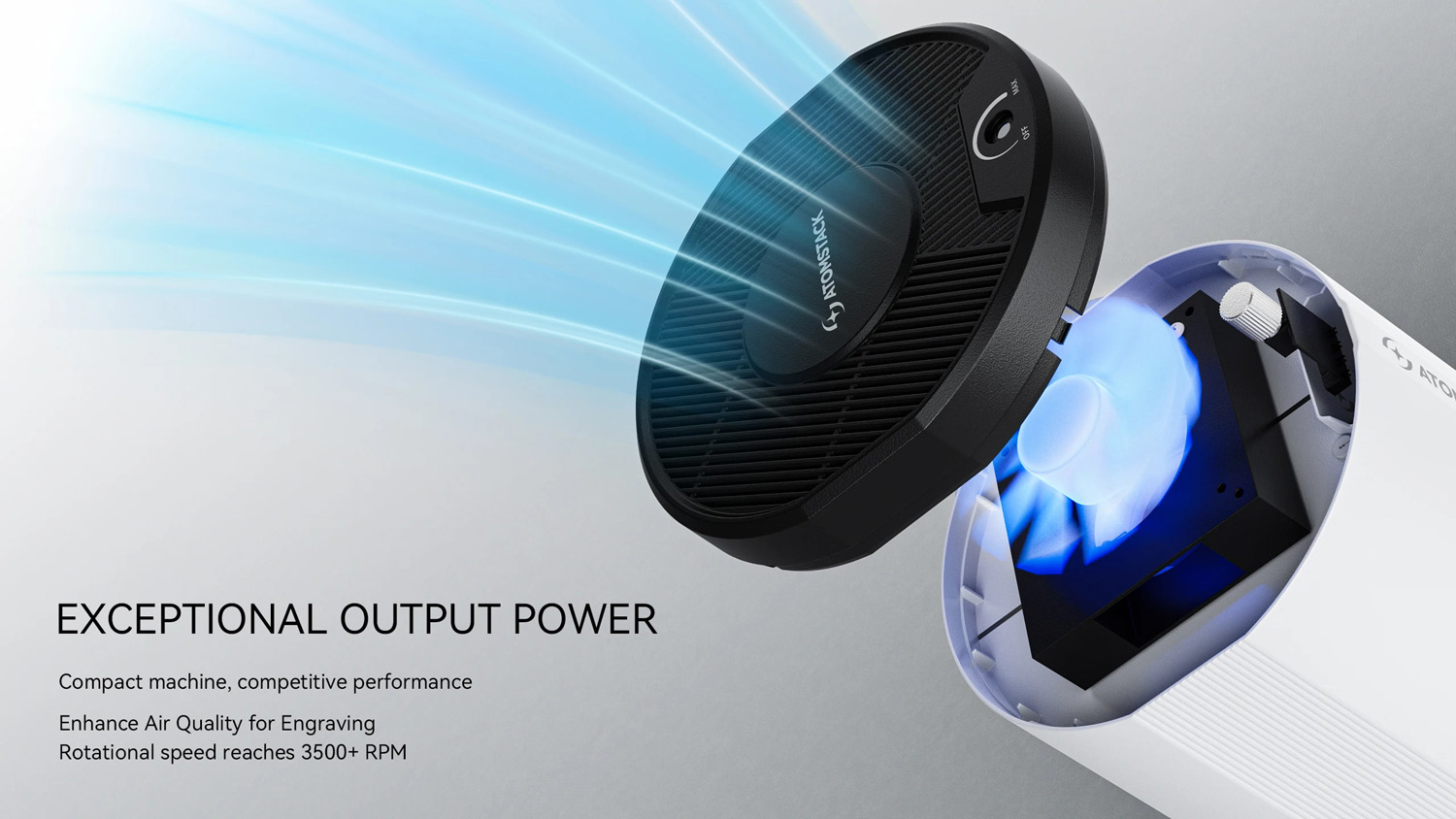 Model AtomStack D3 je pokročilý filtračný systém, ktorý bol špeciálne vyvinutý pre používateľov, ktorí nemajú možnosť odvádzať výfukové plyny potrubím von. Vďaka tejto technológii zostáva vzduch v uzavretých priestoroch, ako sú kancelárie alebo domáce dielne, absolútne čistý aj pri intenzívnom rezaní a gravírovaní.