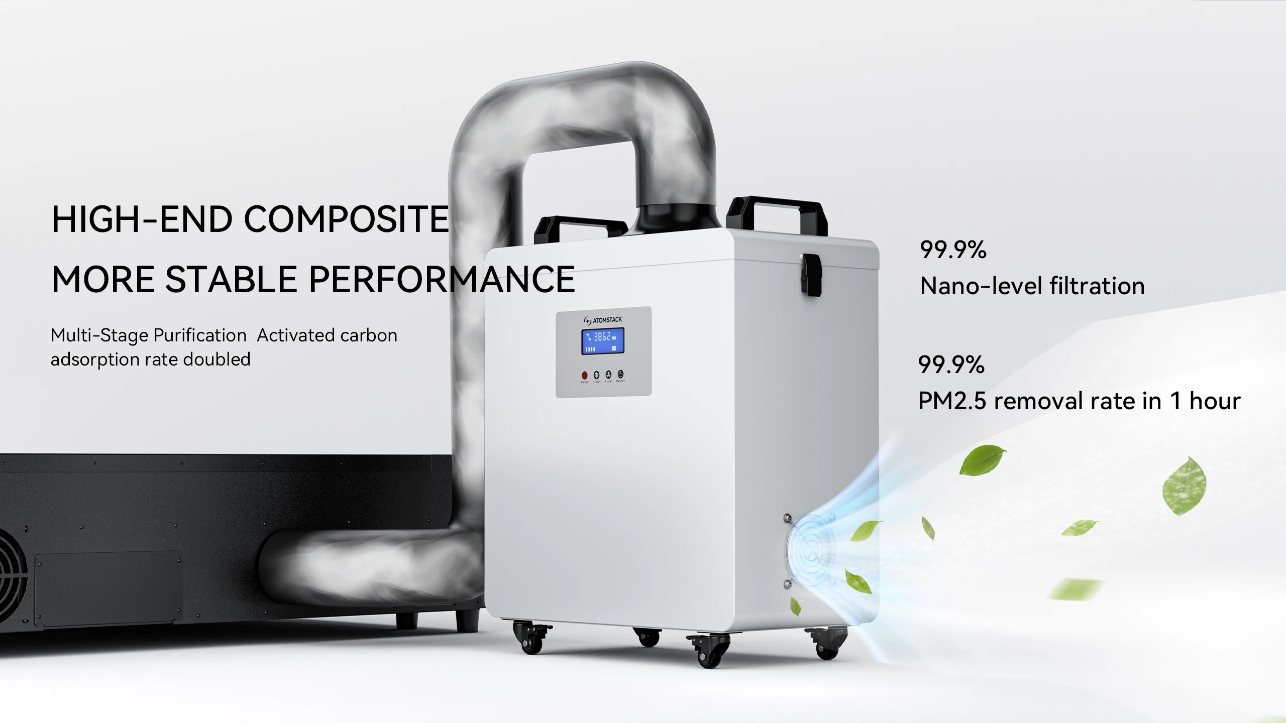 Zaistite absolútnu bezpečnosť s AtomStack D4. Tento odsávač dymu ponúka efektivitu filtrácie až 99,97 %. Na rozdiel od lacných rozpočtových riešení je model D4 vybavený výkonným bezuhlíkovým motorom (5200 ot./min), ktorý zaručuje priemyselné prúdenie vzduchu až 22,5 m/s a pritom pracuje extrémne ticho.