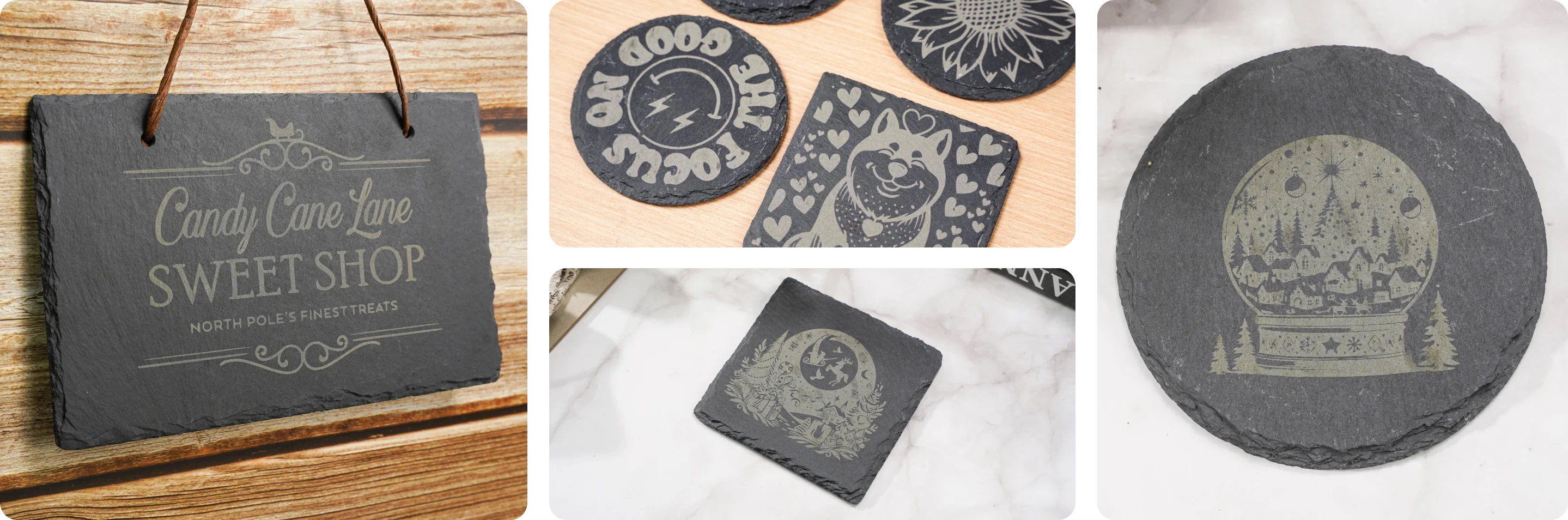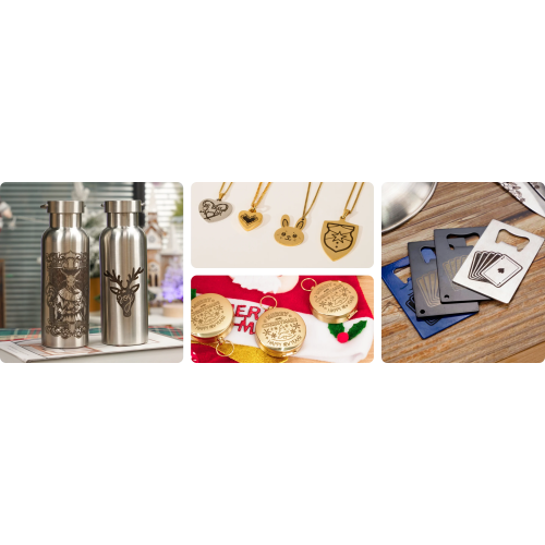| Materiály na gravírovanie | Diodový laser: Drevo, koža, džínsy, keramika, MDF, hliník, čierny akryl, sklo, papier, natretá oceľ, brúsená oceľ, kameň, PCB, bambus, látky, jadeit, mramor, bridlica, tehly. IR laser: Všetky kovy (zlato, striebro, mosadz, oceľ, hliník atď.), plasty, čierny akryl. |