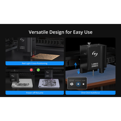 Vyskúšajte silu integrovanej technológie zaostrovania – diódový a infračervený laser automaticky nastaví zaostrenie pre maximálnu presnosť pri rezaní a gravírovaní.