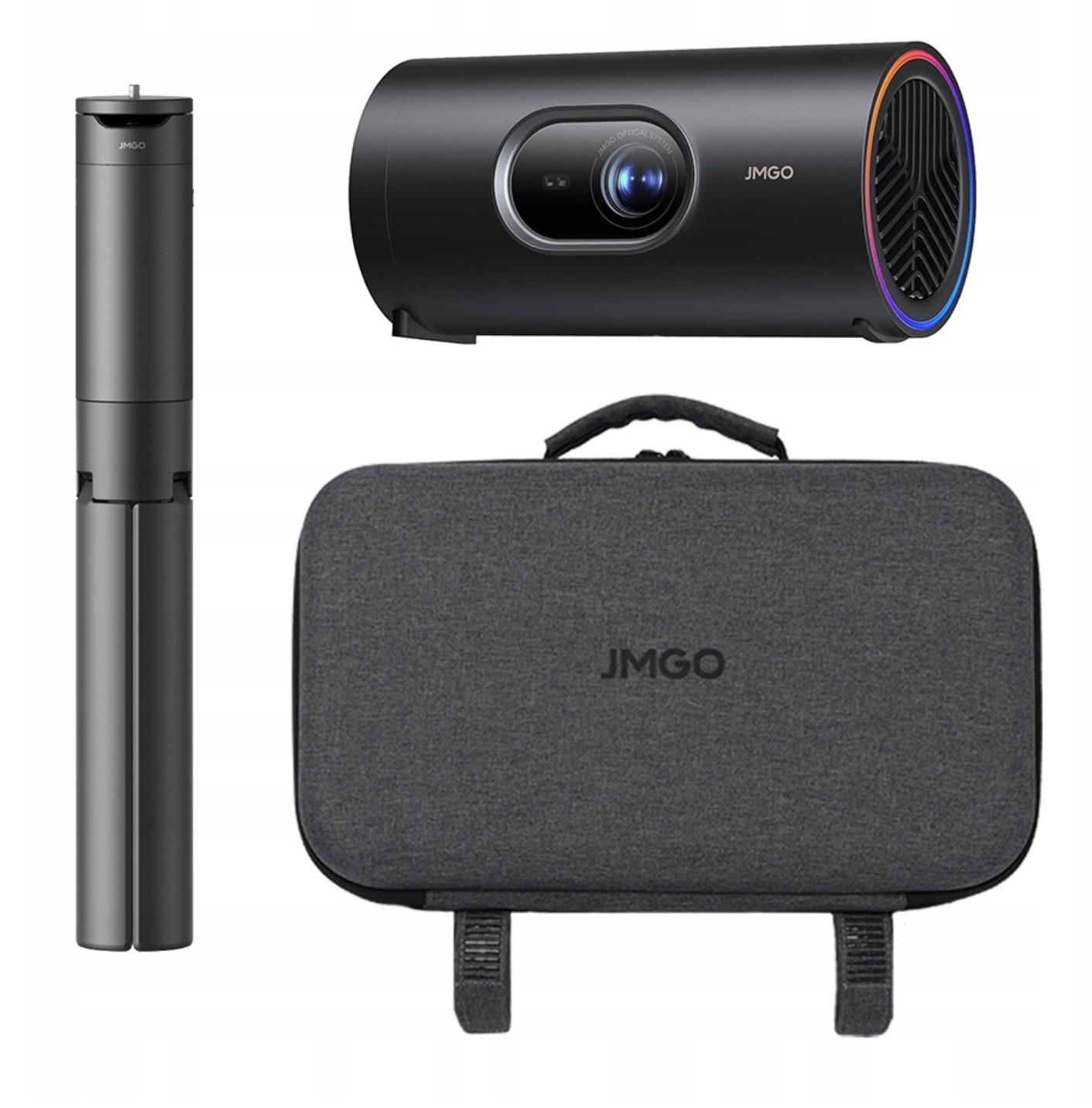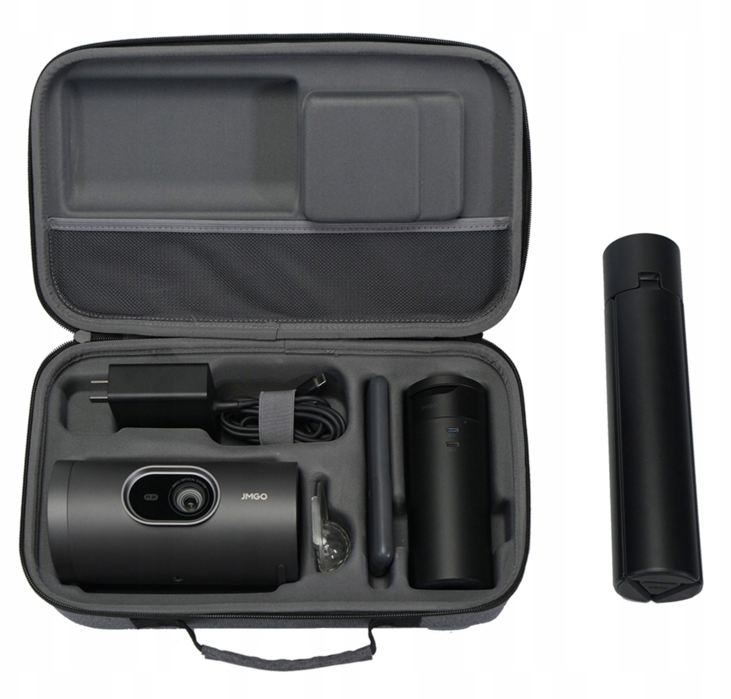 Obsah balenia: projektor PicoPlay+, statív s 20 000 mAh powerbankou, napájací adaptér, diaľkové ovládanie, návod, optický filter a ochranné puzdro.