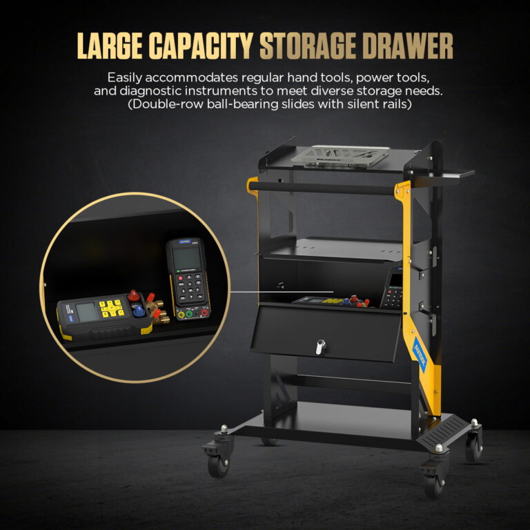 HLADKÁ MOBILITA A STABILITAPráca v dielni si vyžaduje časté presuny vybavenia. AUTOOL T23 je navrhnutý tak, aby sa s ním manévrovalo ľahko a presne, a to aj pri plnom zaťažení. Tiché kolieska Heavy Duty: 4-palcové otočné kolieska na ložiskách sa pohybujú bezhlučne a šetria podlahu dielne. Bezpečnostné blokovanie: Dve kolieska sú vybavené pevnými brzdami, ktoré imobilizujú vozík v požadovanej polohe. Ergonomická rukoväť: Profilované madlo s protišmykovou úpravou uľahčuje tlačenie a ťahanie vozíka. |