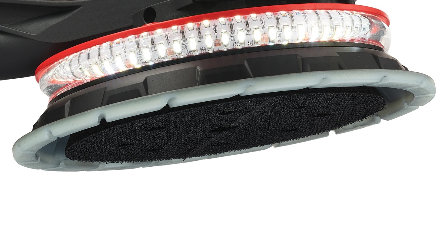Zařízení má 360 ° LED podsvícení kolem číselníku, takže k osvětlení stěny nemusíte používat další halogeny. Pracovní plocha je osvětlena přesně tam, kde brousíme, což dělá práci přesnější a zamýšleného efektu snadněji dosáhnout.