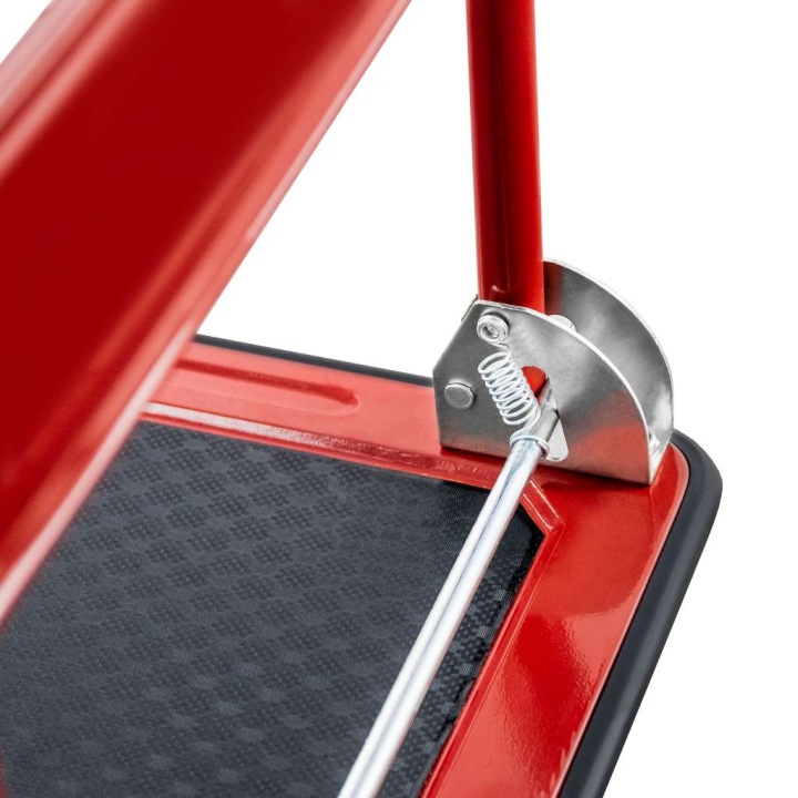 Prepravný vozík HIGHER je vybavený jednoduchým a overeným pružinovým systémom pre sklápanie a rozkladanie držadla. Systém sklápania sa ovláda stlačením páky nohou (bez zohýbania), čo trvá 2-3 sekundy. Je to praktické, jednoduché, ergonomické a overené riešenie. Vďaka použitiu ocele a galvanizovaných prvkov je tento systém veľmi odolný voči mechanickému poškodeniu a poveternostným vplyvom.
