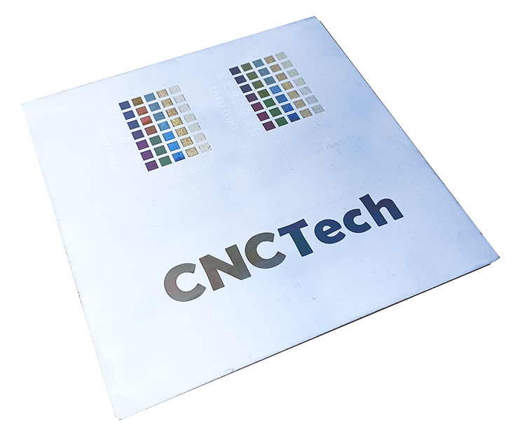 Tento značkovač, okrem gravírovania v odtieňoch bielej a čiernej, dokáže gravírovať aj farebne. Vedľa je príklad farebnej palety, ktorú možno dosiahnuť.